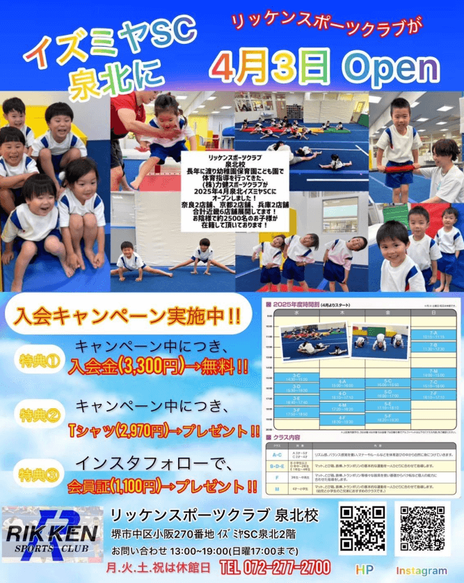 お子様の体操クラブ『リッケンスポーツクラブ』会員様募集中!
