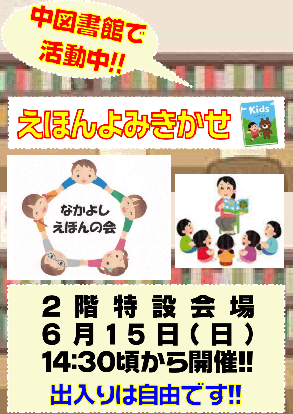 中図書館で活動中の『なかよしえほんの会』による絵本の読み聞かせを開催いたします!