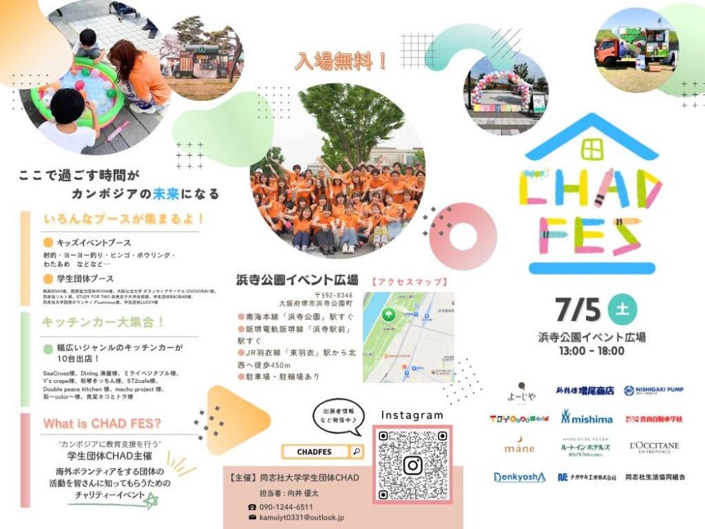 2025年7月5日(土)、浜寺公園にて同志社大学・同志社女子大学の学生団体「CHAD」が主催するイベント「CHADFES」が開催されます!
