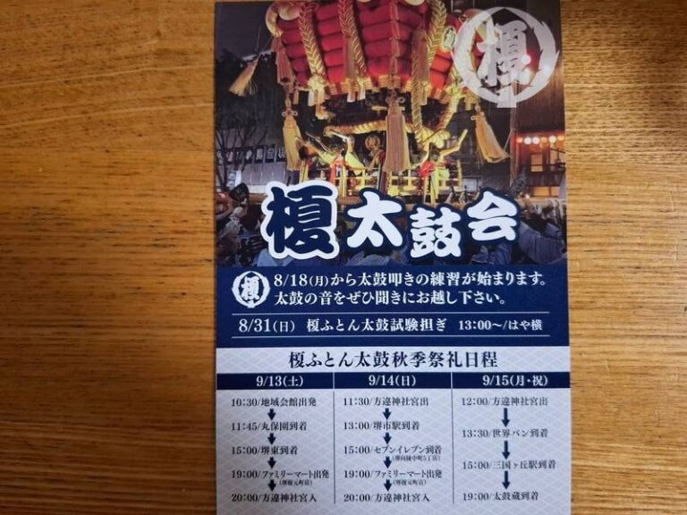 8月31日(日)13時からは榎ふとん太鼓試験担ぎ、