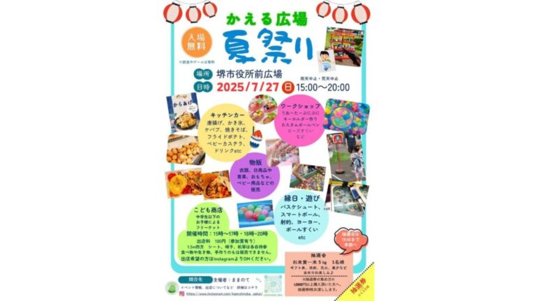 2025年7月27日(日)、堺市堺区・堺市役所前広場にて「かえる広場 夏祭り」が開催されます!