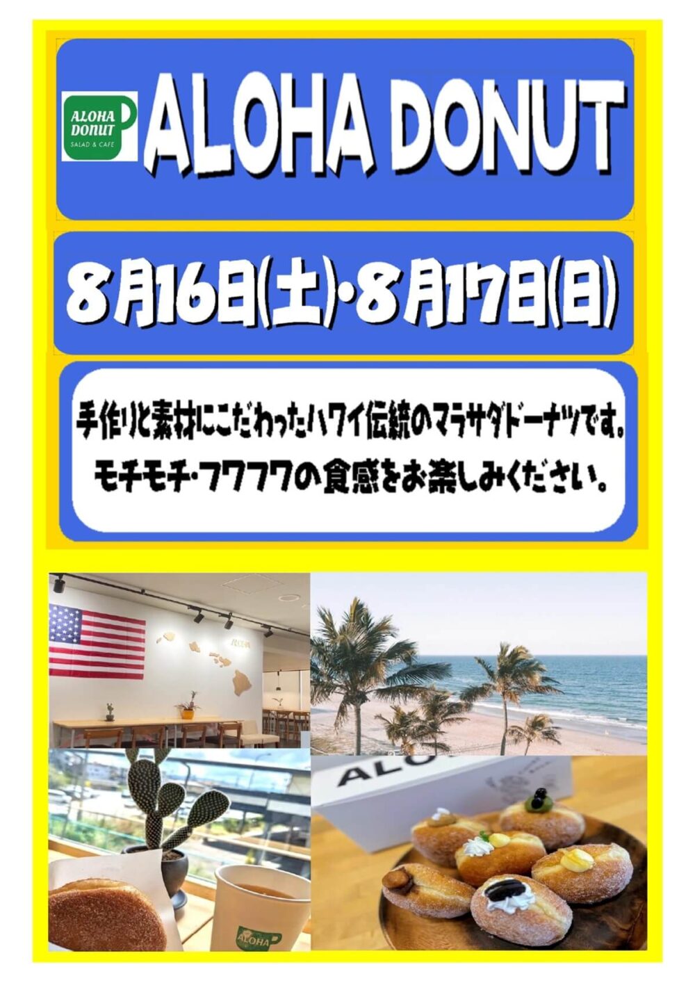 こちらも人気のドーナツ屋さんが再出店!!マラサダドーナツはハワイ定番スイ-ツでモチモチ・フワフワ食感が特徴。