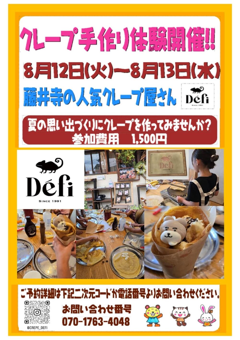昨年もご好評頂きました藤井寺の人気クレ-プ屋さんDefiの「クレ-プ手作り体験イベント」を今年も開催致します!!