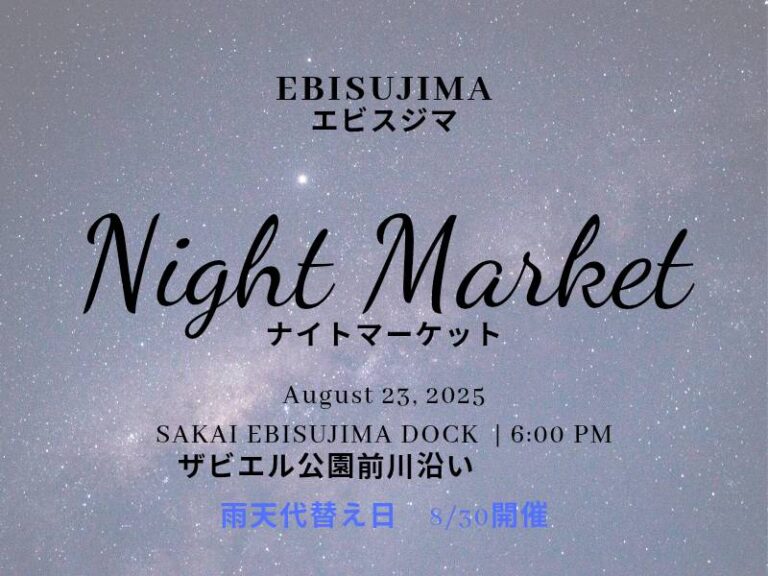 8月23日(土)の夜に「エビスジマナイトマーケット」として、ザビエル公園前川沿いで開催!