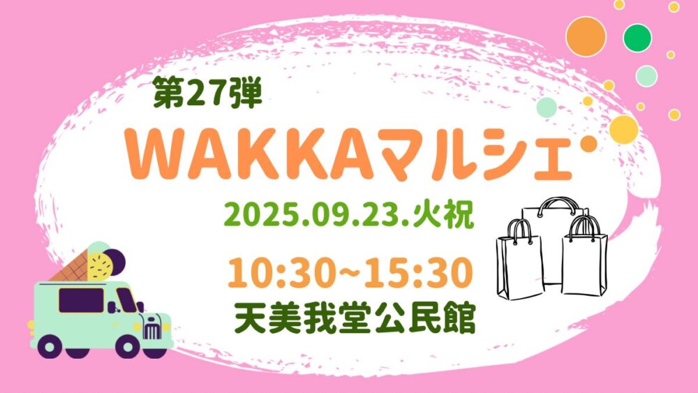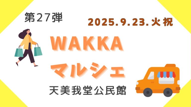 2025年9月23日(火祝)、松原市天美我堂公民館にて『第27弾 WAKKAマルシェin北花田』が開催されます♪