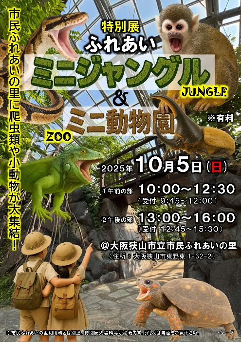 2025年10月5日(日)、大阪狭山市にある「市民ふれあいの里」が、なんと「ミニジャングル&ミニ動物園」に大変身!