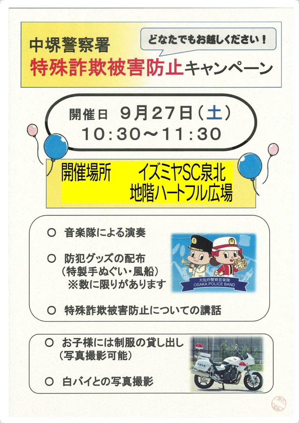 大阪府警 中堺警察署による特殊詐欺被害防止キャンペーン