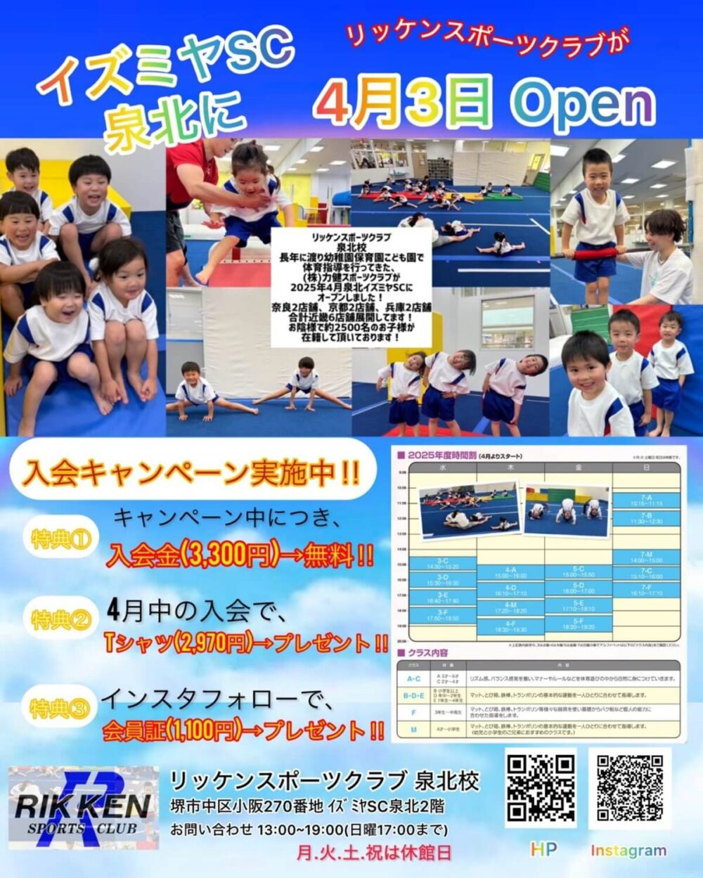お子様の体操クラブ『リッケンスポーツクラブ』会員様募集中!