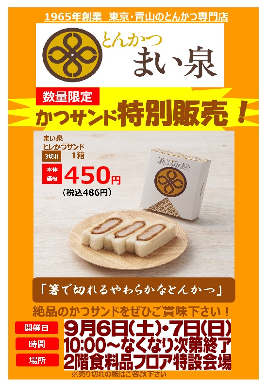 東京・青山のとんかつ専門店 まい泉の「かつサンド」を期間限定販売!!