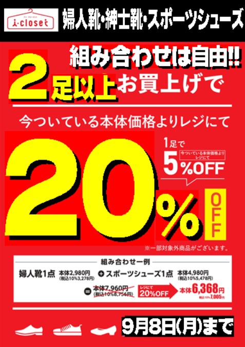 今ならシュ-ズを2点以上お買い上げいただきますと