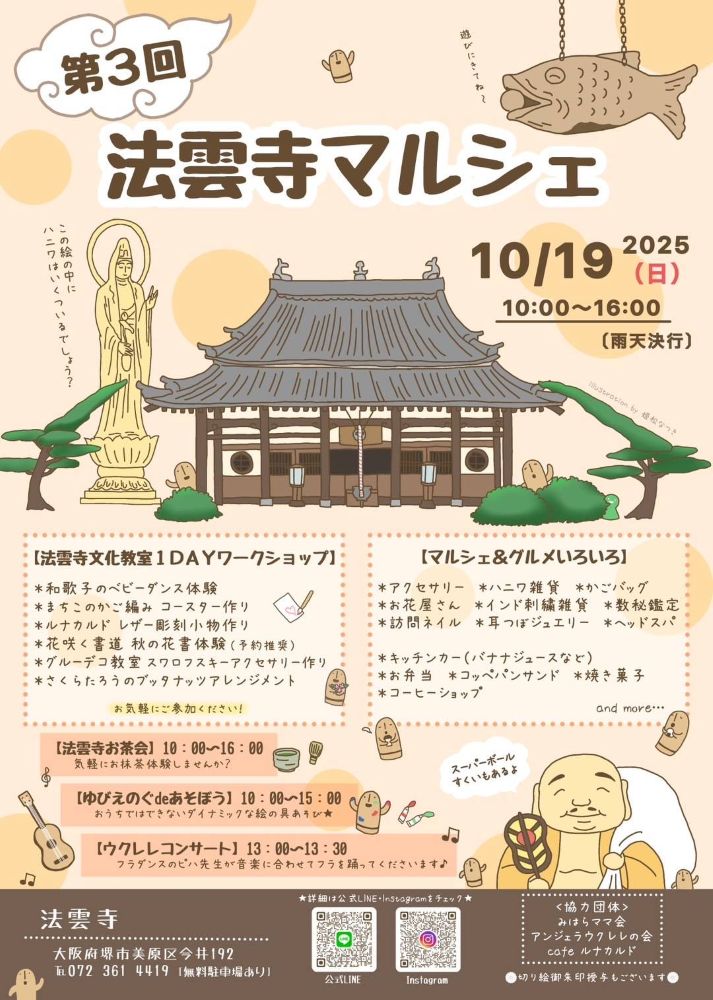 美原区の法雲寺で開催される「第3回 法雲寺マルシェ」は、地元グルメや楽しい体験が大集合する、家族みんなで楽しめるイベントです。