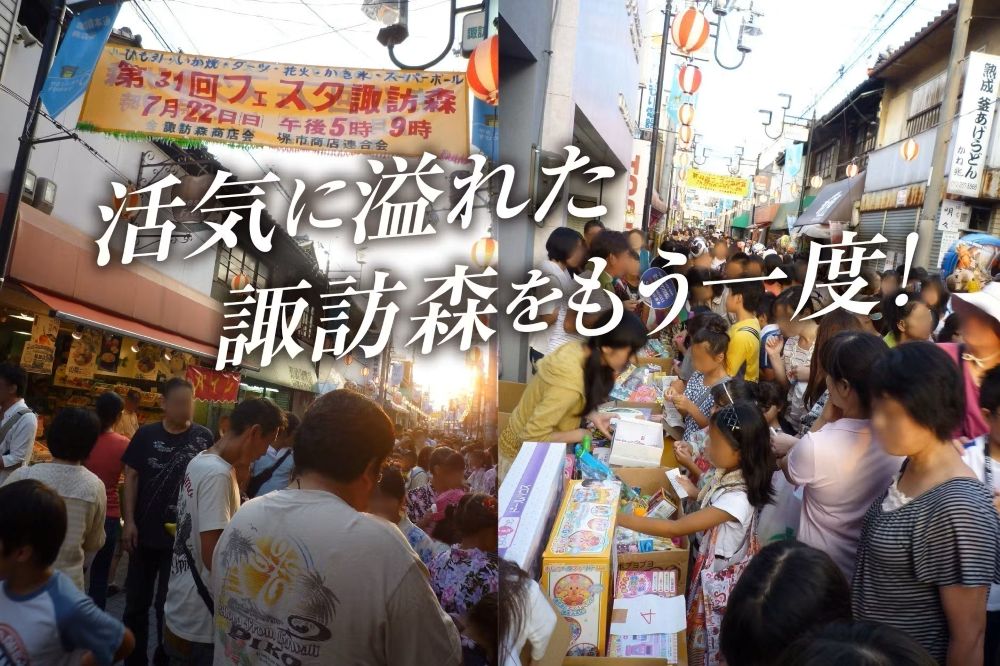 高齢化や資金不足で再開が難しかったのですが、「諏訪森を再び活気ある街にしたい!」という地元有志の熱い想いと、多くの支援(クラウドファンディング)によって、今回の再開が実現しました。地域愛の結晶とも言えるイベントです!