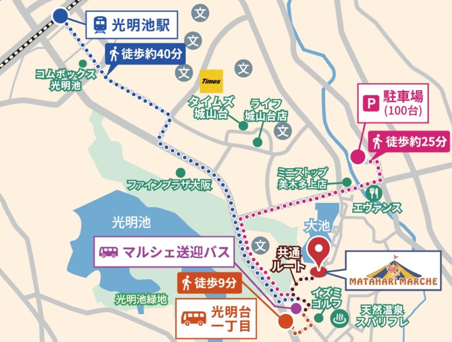 - 送迎: 当日は無料のマルシェ送迎バスあり!(送迎バスの所要時間:光明池駅から片道約10分・専用駐車場から片道約5分)