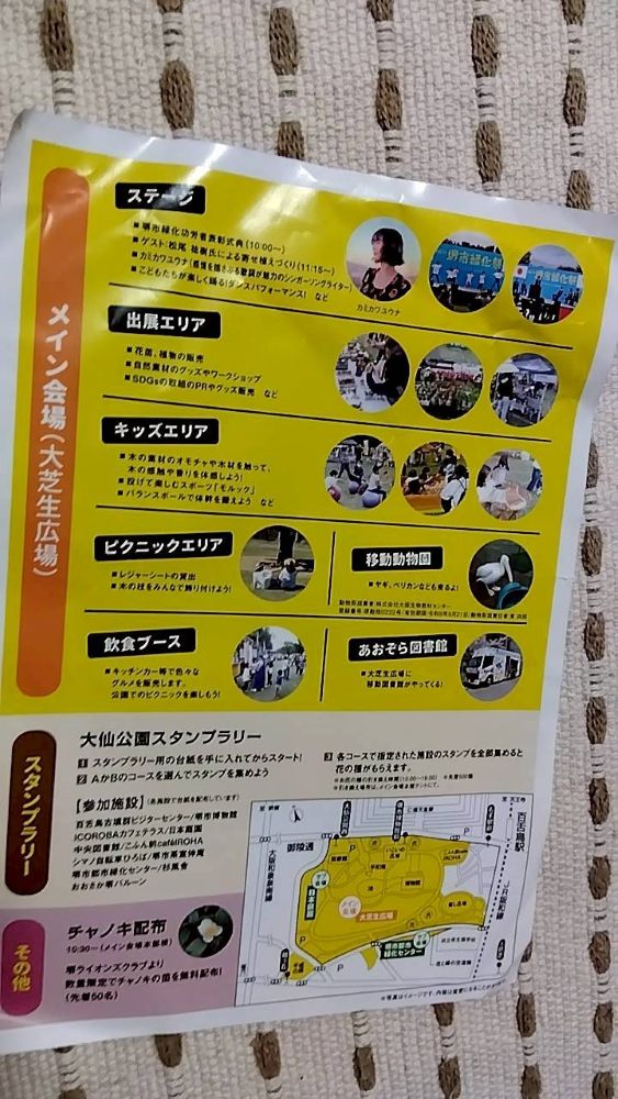 大仙公園の大芝生広場をメイン会場とし、植物の販売や子供向けに自然素材を使った遊びやクラフト工作、キッチンカーがやってきます☆