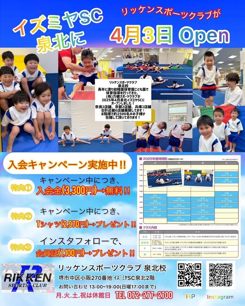 お子様の体操クラブ『リッケンスポーツクラブ』会員様募集中!