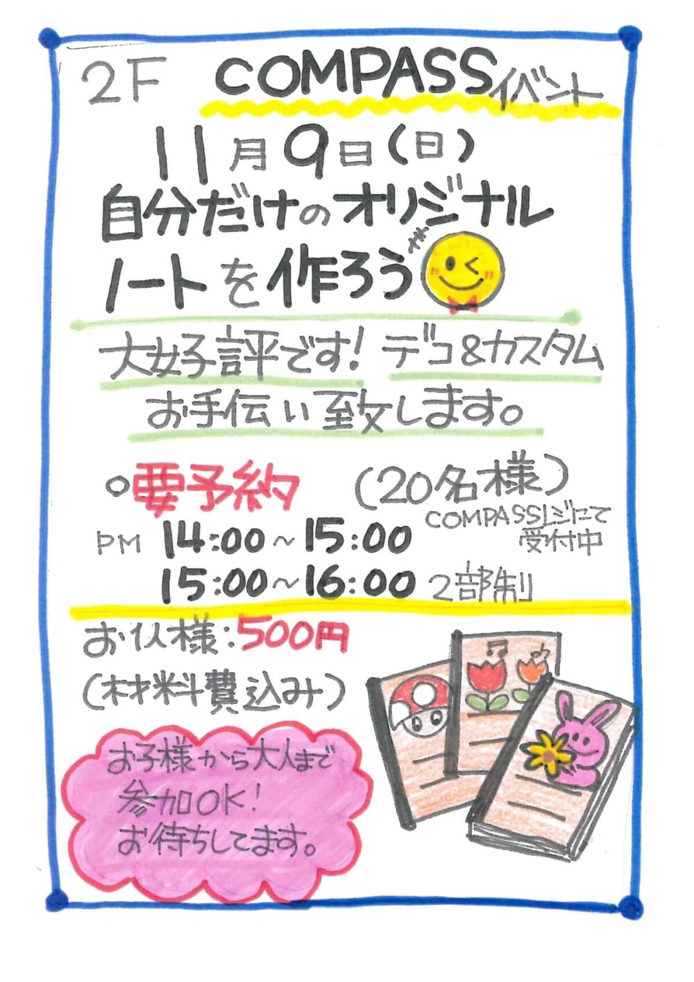 参加費:500円(税込)※要予約(あわせて20名様まで)COMPASSレジにて受付中