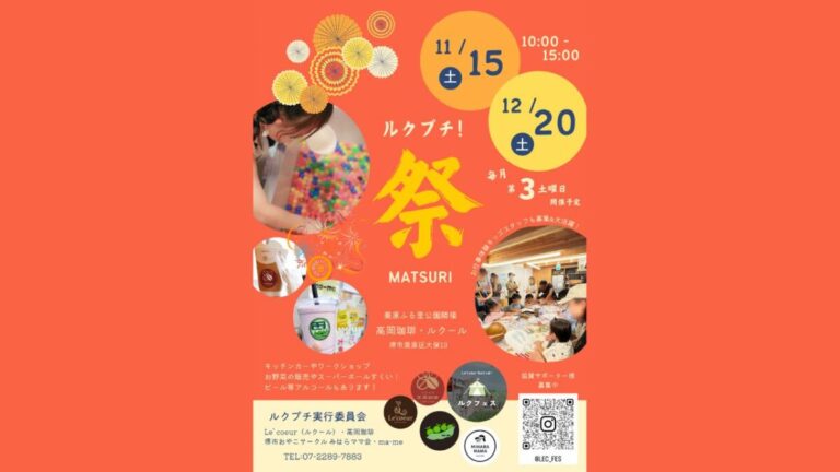 堺市美原区の皆さん、週末の予定はお決まりですか?地元で愛される高岡珈琲・ルクール(美原ふる里公園隣接)で、大人気の地域密着型マルシェ「ルクフェスプチ! vol.6 〜祭〜」が開催されます!