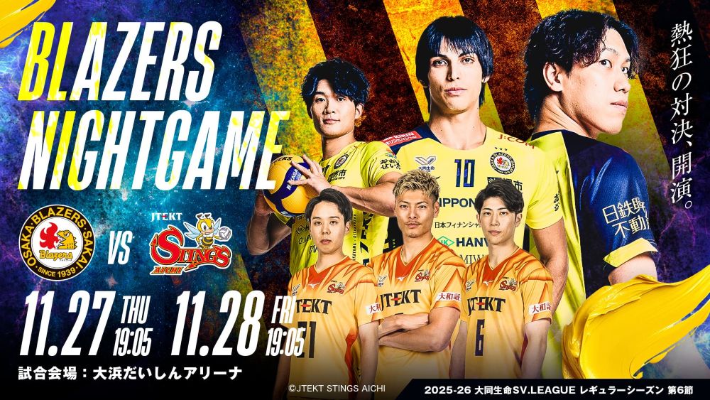 仕事終わりに熱狂!日本製鉄堺ブレイザーズが大浜だいしんアリーナで強豪ジェイテクトSTINGSと激突!