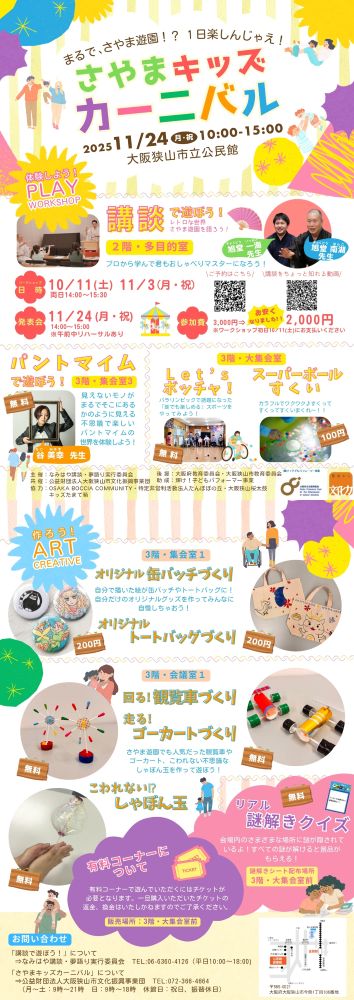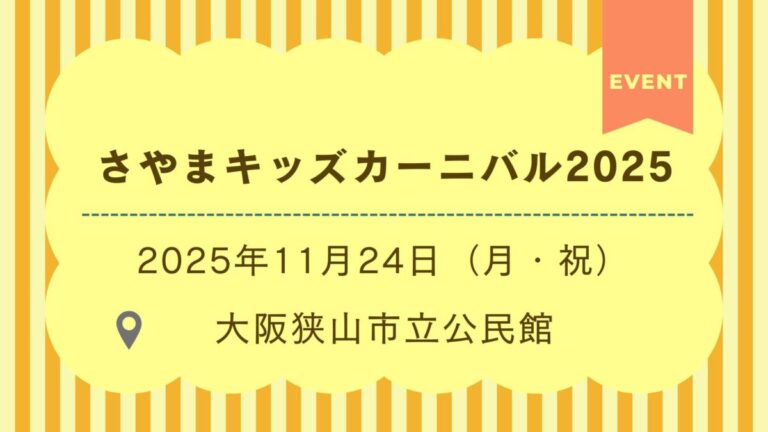 大阪狭山市立公民館で、子どもから大人まで楽しめるイベント「さやまキッズカーニバル2025」が開催されます!