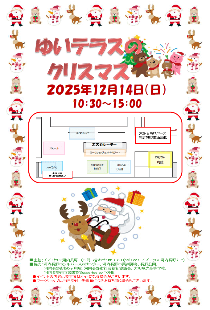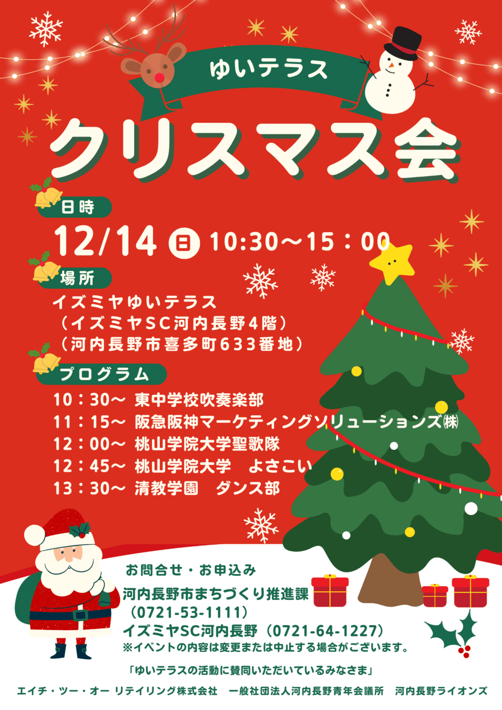 クリスマスの楽しさが溢れる季節がやってきました!イズミヤSC河内長野の4階ゆいテラスでは、今年も盛大に「ゆいテラス クリスマス会」を開催します。