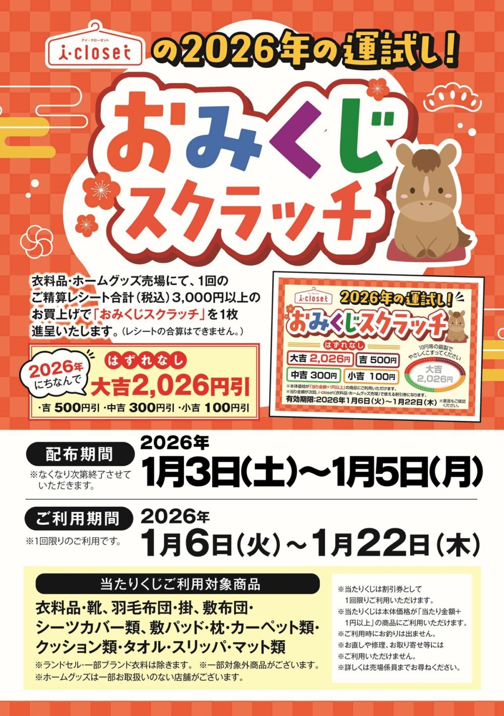 2階の衣料品売場「i-closet」では、新年の運試しにぴったりの特典が目白押しです!
