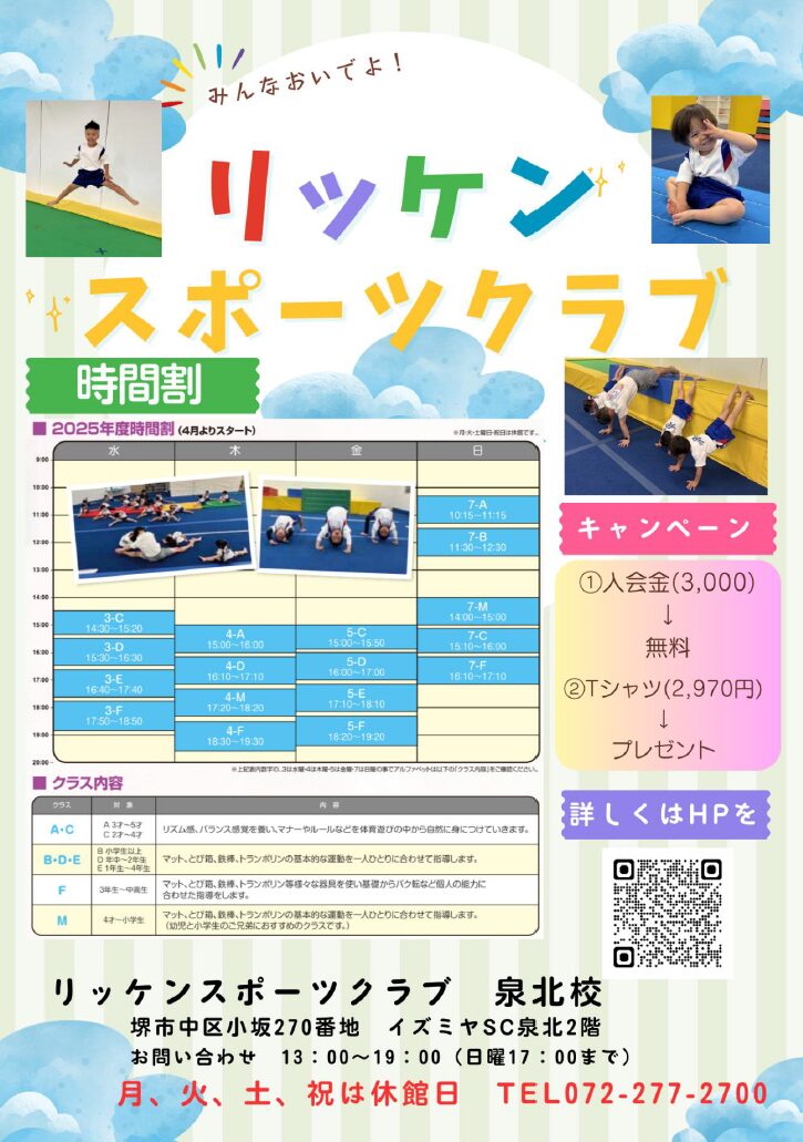 お子様の体操クラブ『リッケンスポーツクラブ』会員様募集中!