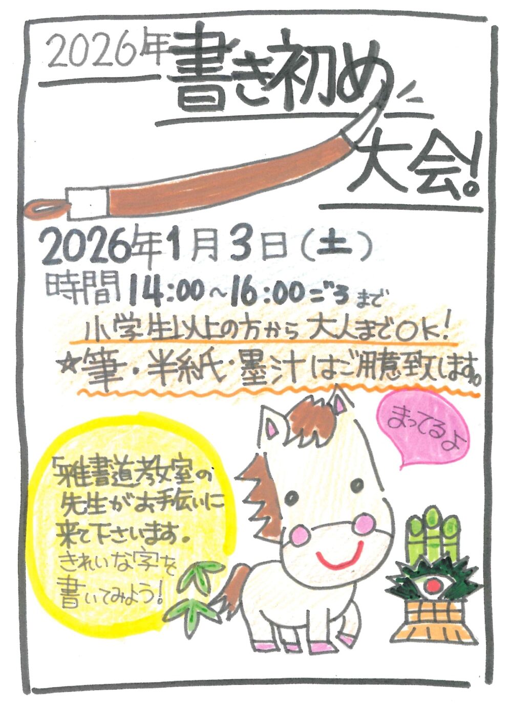 ~午~ 2026年 書き初め大会! ※あかしや筆・雅書道教室協力