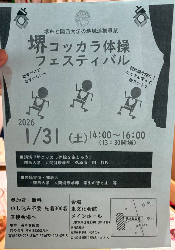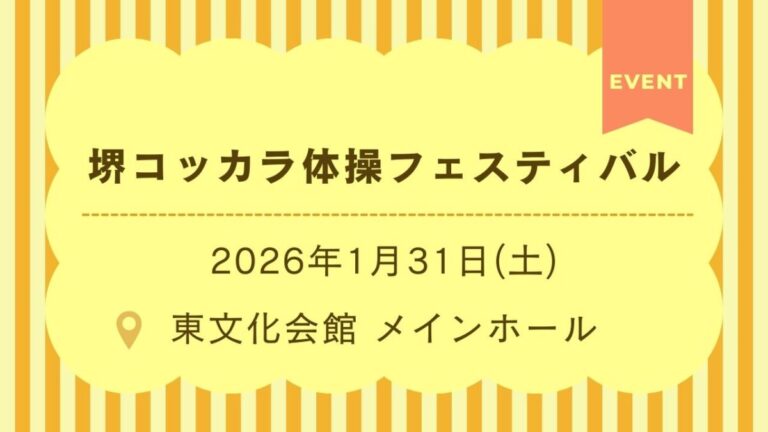 2026年1月31日(土)、北野田駅からすぐの東文化会館で『堺コッカラ体操フェスティバル』が開催されるそうですよ!