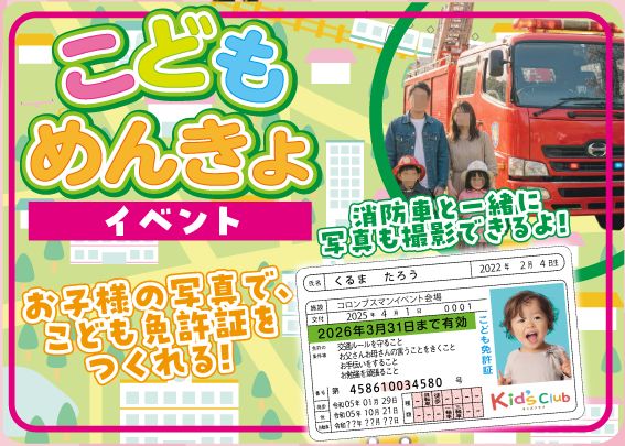 さらに、お子様の写真が入った世界に一つだけの「こども免許証」を作れるイベントも開催(※要参加条件確認)。