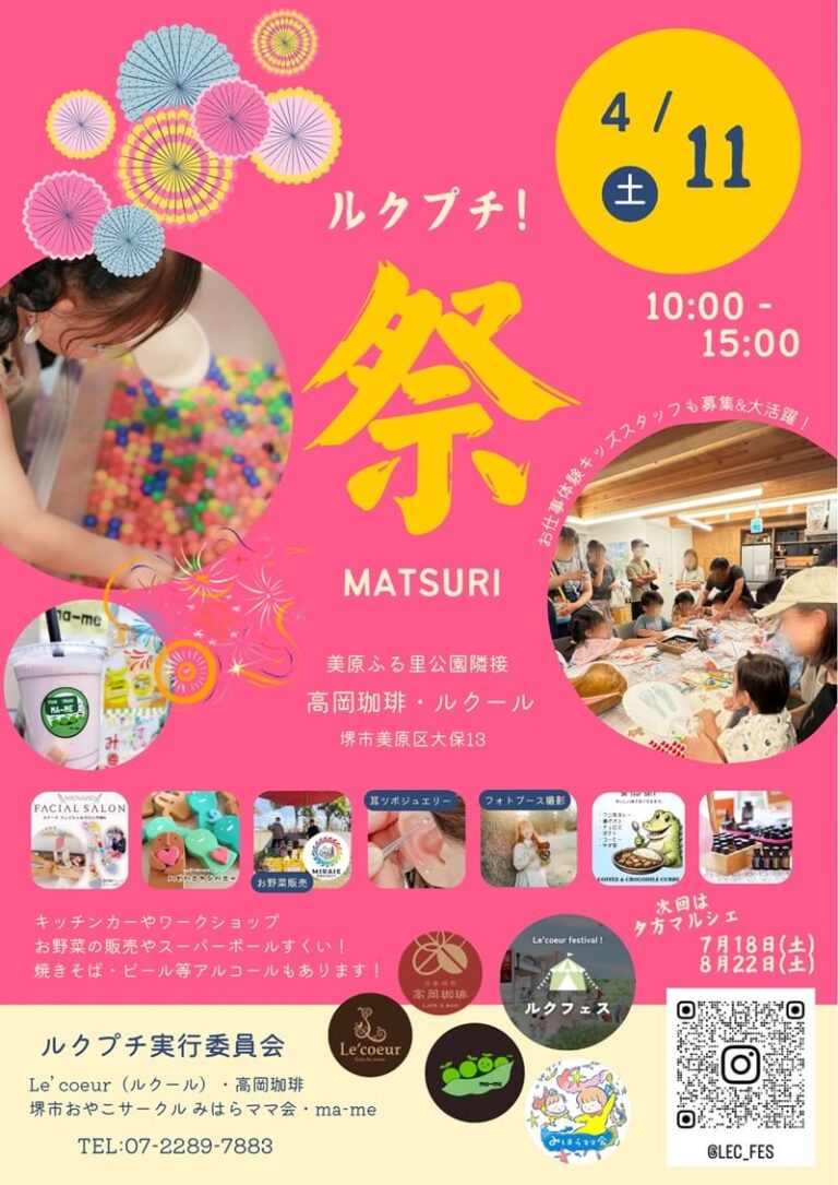 2026年4月11日(土)、堺市美原区の「美原ふる里公園」すぐそばにある施設「ルクール」にて、『ルクプチ!祭(MATSURI)』が開催されます!