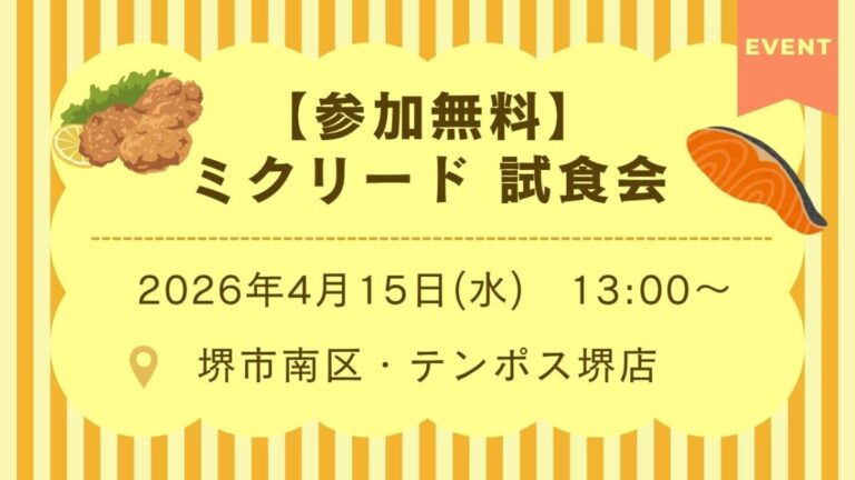 2026年4月15日(水)に、業務用食材のカタログ通販会社『ミクリード』の試食会が開催されますよ♪