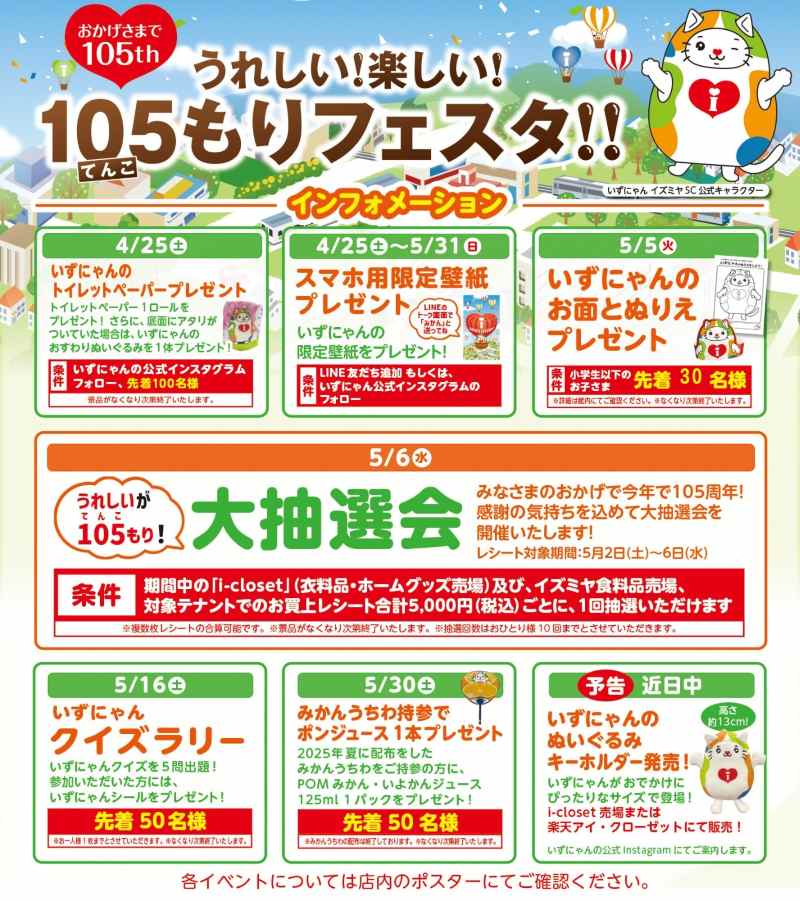 いつものお買い物がもっと楽しくなる、イズミヤSCの105周年イベント!