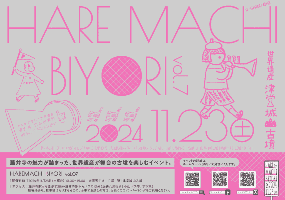 思いっきり藤井寺を体感できるイベント『ハレマチビヨリvol.7』が、11/23(土・祝)に開催されます。