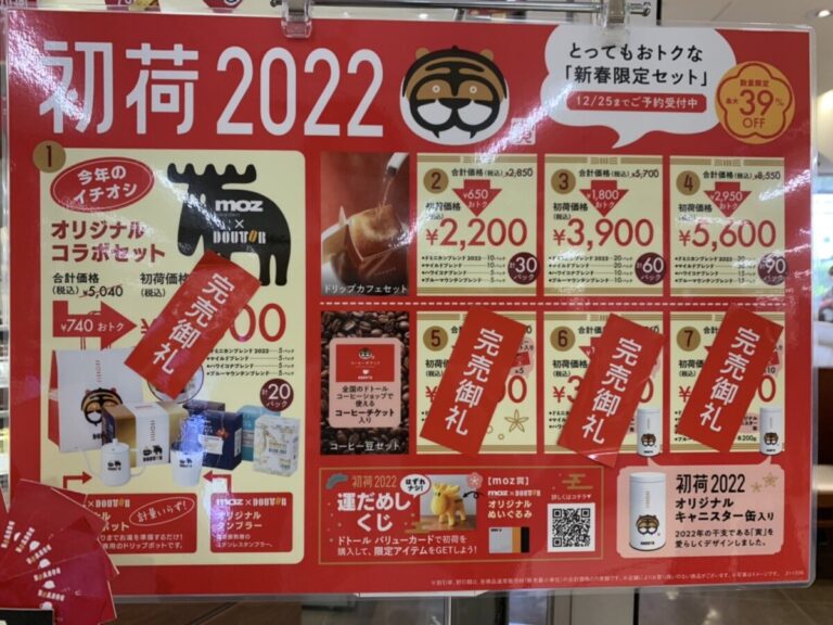 『ドトール』の福袋、新春限定の『初荷2022』の予約受付がはじまっています♪