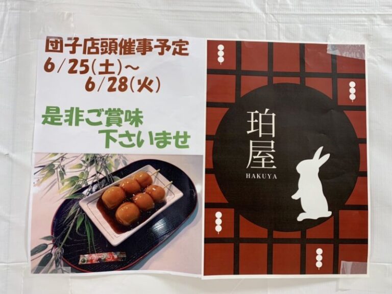 羽曳野市にあるイズミヤ 古市店に大きなお団子が特徴的な和菓子専門店『珀屋(ハクヤ)』が期間限定の店頭販売をするようです♪