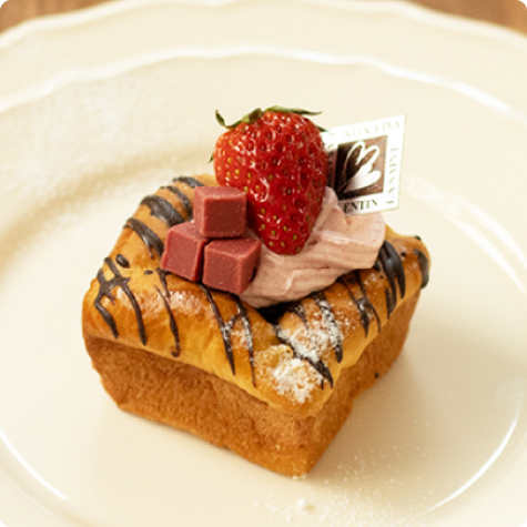 ショコラ生地でパンスイスをアレンジしました。甘酸っぱいフランボワーズのクリームとホワイトチョコがよく合います。