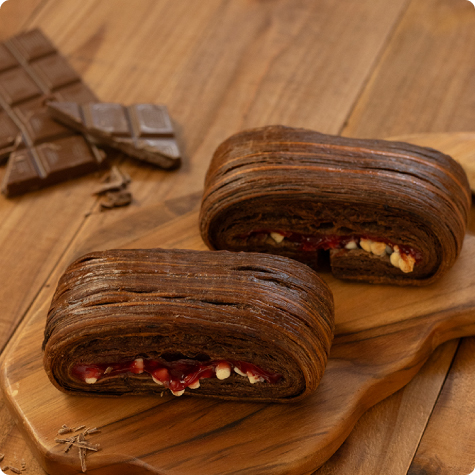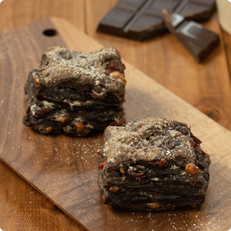 フランス生地にバターを織り込みました。何層にも重なった間にはクランベリー、クルミ、チョコチップを!クセになる食感がたまりません。