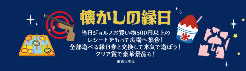 堺東駅直結の『ジョルノ』にて、8月3日(土)限定で、「懐かしい昭和縁日 よってこ横丁」が開催されます!