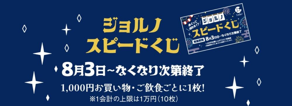 1,000円(税込)お買い上げ・ご飲食ごとに、その場でめくって当たるジョルノスピードくじをプレゼント!