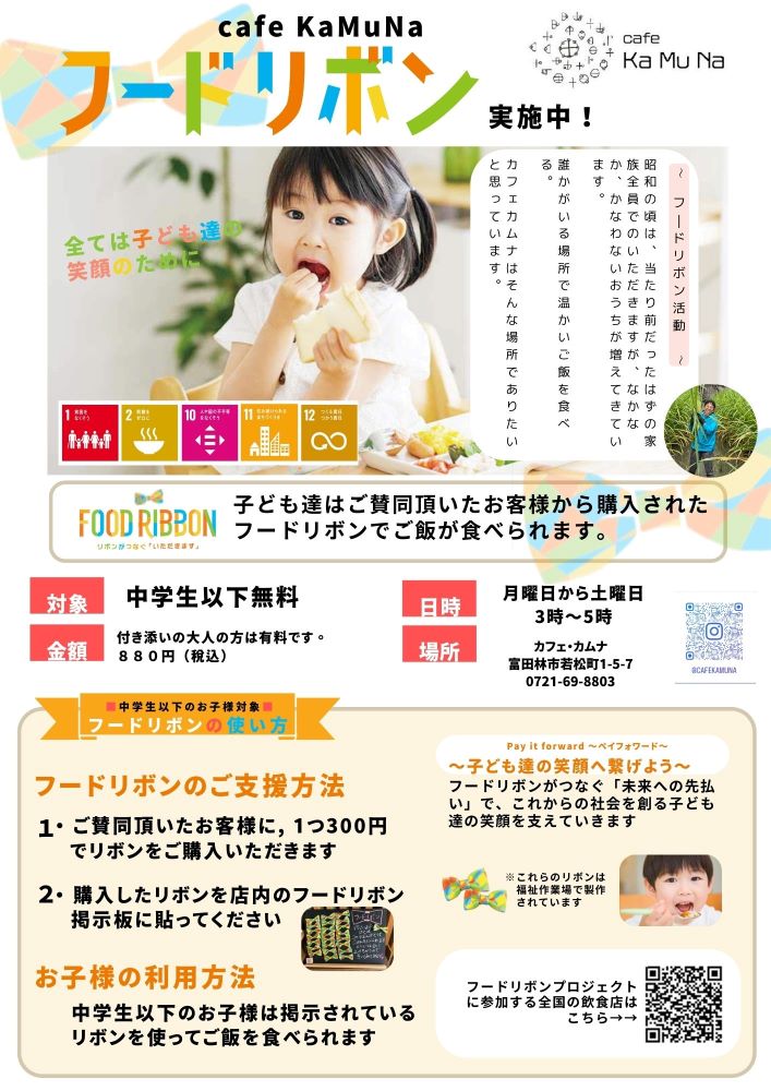 「フードリボン」は、地域の子どもたちが温かいごはんを食べられるよう、お客様のご賛同によって成り立つ支援プログラムです。