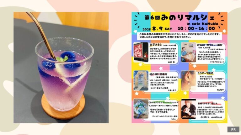 そんな『cafe KaMuNa(カフェ カムナ)』で2025年8月9日(土)に毎回大好評のイベント『第6回 みのりマルシェ』が開催されます。
