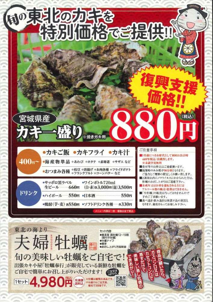 東北産の新鮮な牡蠣を、その場でジューシーな炭火焼きBBQとして楽しめるイベントです♪