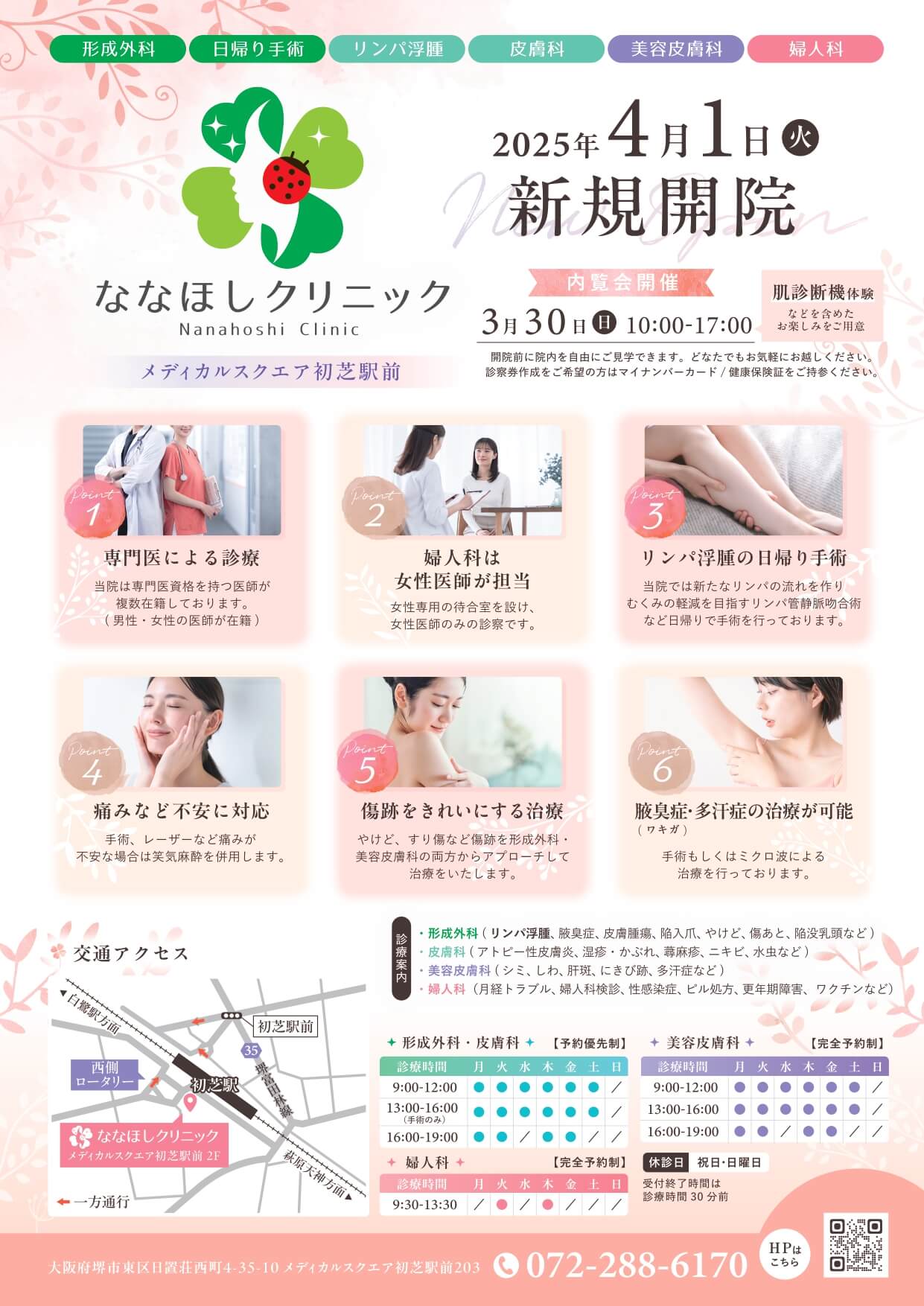 2025年4月1日(火)、堺市東区・初芝駅前に【形成外科・皮膚科・婦人科・美容皮膚科】がそろう「ななほしクリニック」が開院します!