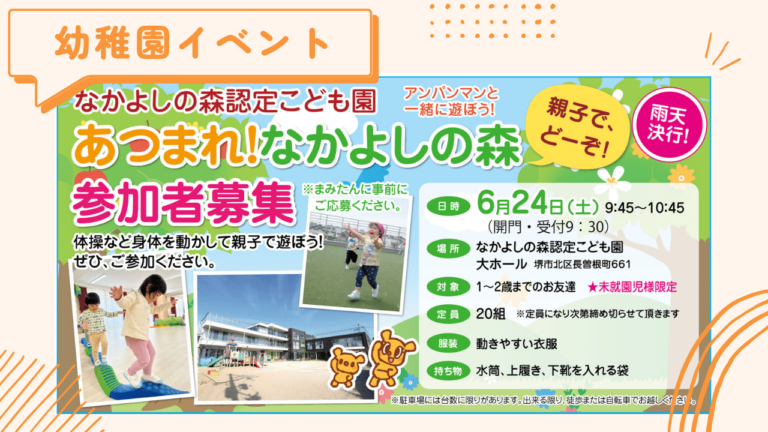 新金岡にある『なかよしの森認定こども園』で6月24日(土)にイベントが開催されます!