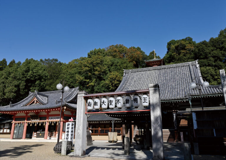 厄除け、眼病平癒の霊場として有名な瀧谷不動尊は、弘法大師開山の歴史あるお寺です。本尊不動明王および脇侍の矜羯羅(こんがら)童子・制吒迦(せいたか)童子との御三体は、大師一刀三礼の霊像として敬われ、いずれも国の重要文化財に指定されています。また、日本三不動の一つに数えられ、毎月28日の御縁日には多くの参拝者で賑わいます。