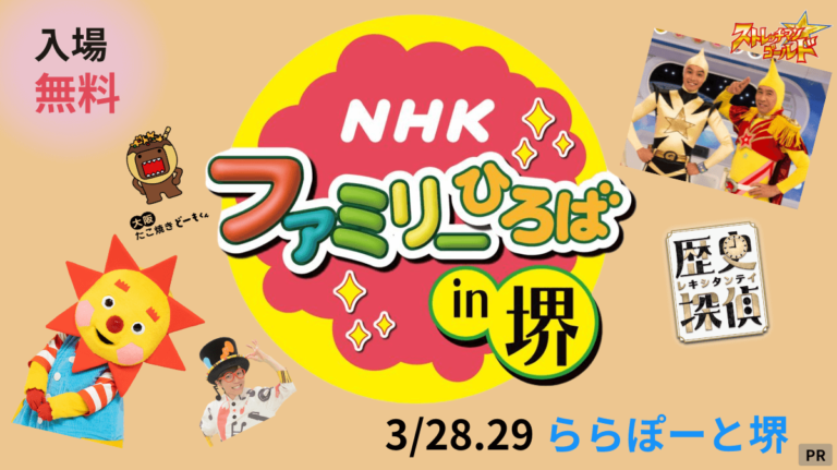 ステージショーやVR体験、キャラクター展示などが楽しめる『NHKファミリーひろば in 堺』が3/28(木)・3/29(金)の2日間で開催されます。