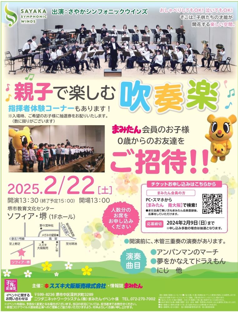 2/22(土)に、堺市中区の「ソフィア堺」で「親子で楽しむ吹奏楽」が開催されますよ☆彡