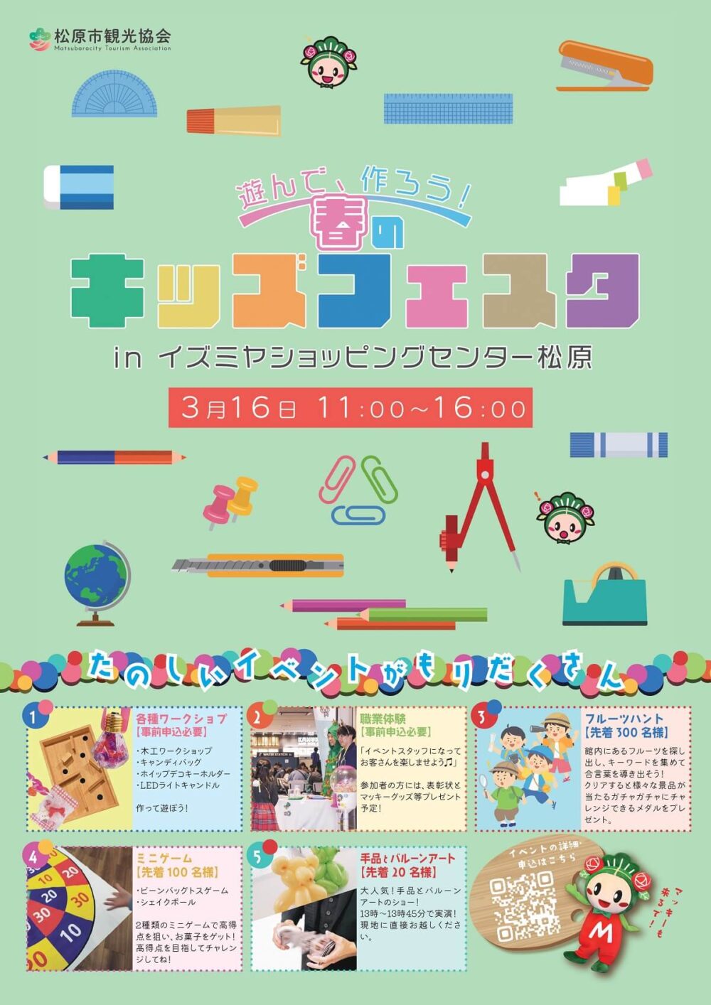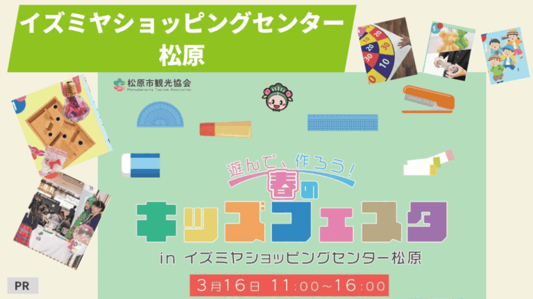 子どもたちが夢中になる「春のキッズフェスタ」と、地元のおいしいものが集まる「松原物産展」が同時開催されます!