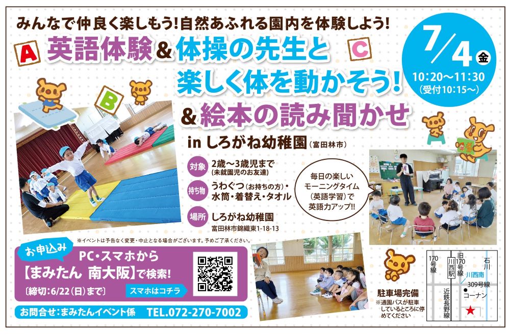 2025年7月4日(金)に、富田林市にある「しろがね幼稚園」でイベントが開催されます!