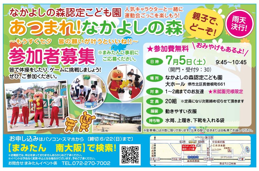 2025年7月5日(土)に、堺市北区「なかよしの森認定こども園」にてイベントが開催されます!